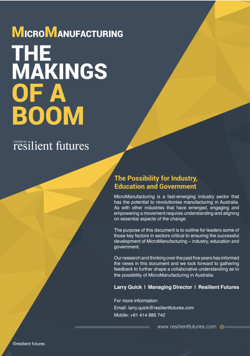Our research and thinking over the past five years has informed the views in this document and we look forward to gathering feedback to further shape a collaborative understanding as to the possibility of Micromanufacturing in Australia.