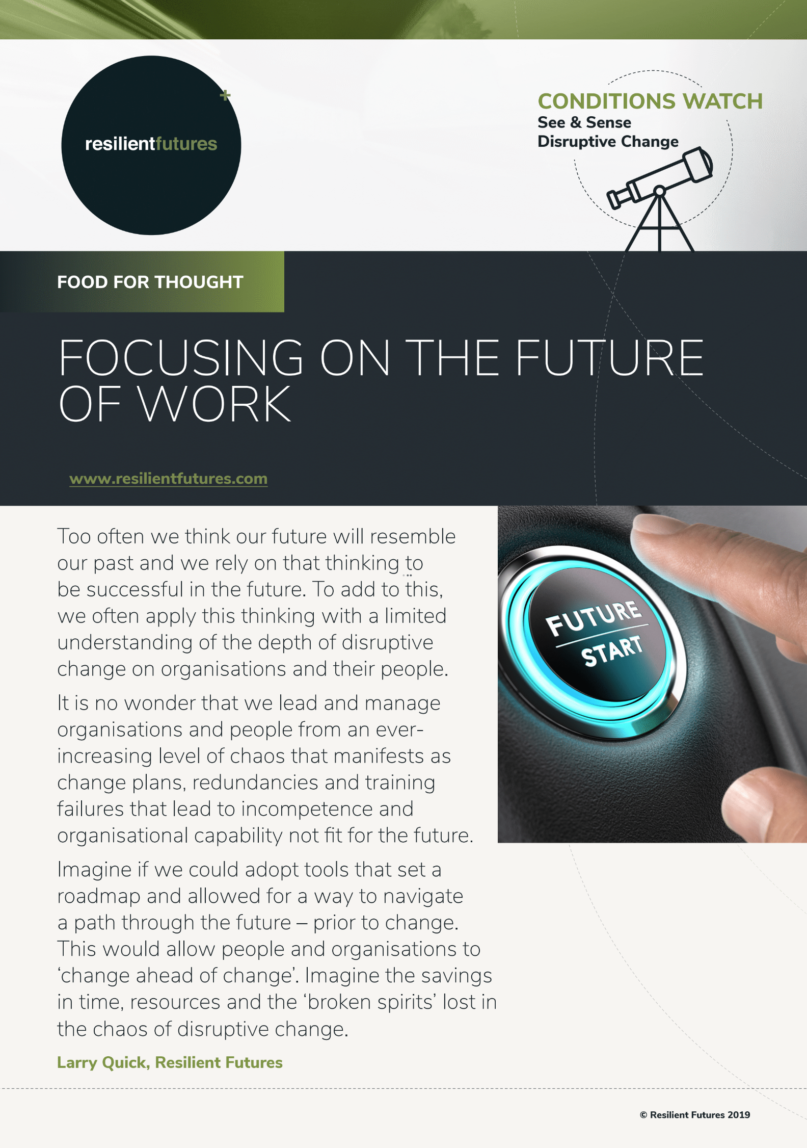 Driving this thinking is the whole purpose of Larry Quick’s new book: ‘Owning Your Future Work’.